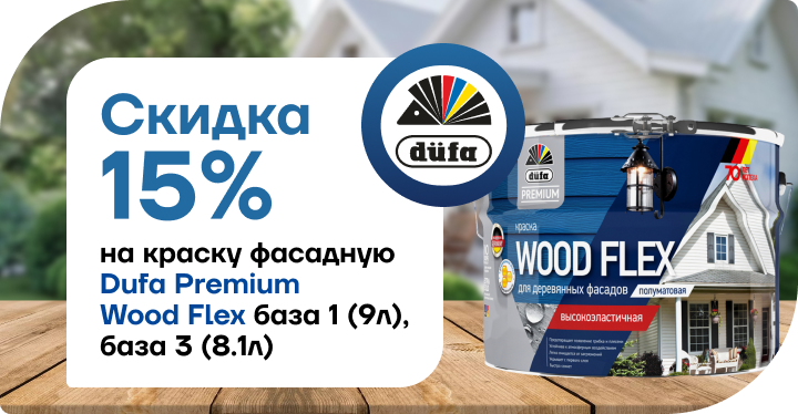 Скидка 15% на фасадную краску Dufa Premium Wood Flex